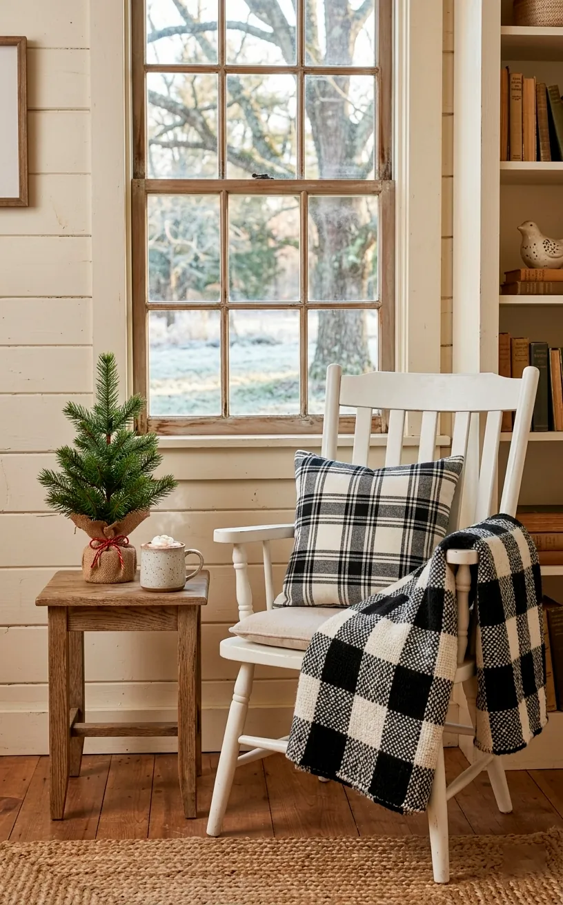 Ever wondered why this works so well? It’s all about the high contrast. It keeps the eye moving without overwhelming your brain. I usually layer a smaller check pillow in front of a larger, solid cream one to add some depth to my armchair. This simple swap transforms the entire corner from “average Tuesday” to “winter wonderland” in about thirty seconds flat. You don’t need a massive budget to pull this off either; just grab a few covers and call it a day.