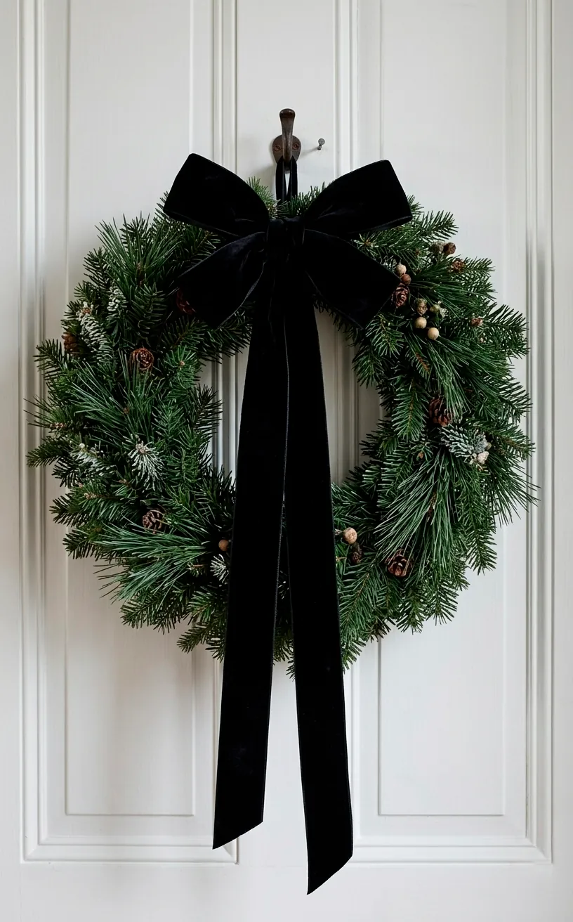 Stop using that stiff, plastic-feeling red ribbon from the big-box stores. Seriously, just stop. Black velvet ribbon is the secret weapon for a high-end farmhouse look. I use it to hang wreaths on my interior doors or tie it around the stems of my wine glasses. The light catches the velvet perfectly, adding a touch of luxury to the humble greenery. It feels sophisticated but remains grounded in that rustic aesthetic we love. For more holiday inspiration that leans into the darker side of things, check out these 10 dark cottagecore christmas decor trends 2026.