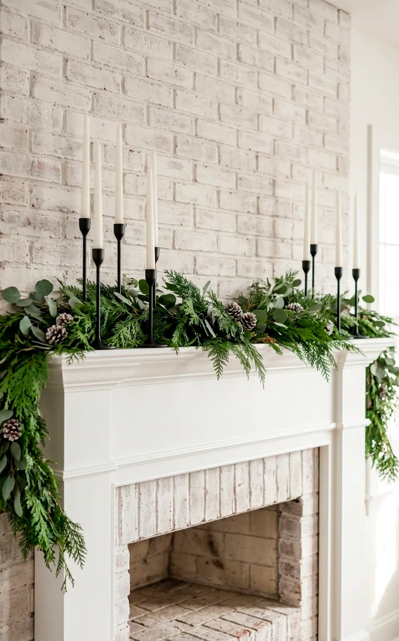 If you want to add some serious drama to your mantel without hiring a decorator, grab some matte black candlesticks. They provide a sharp, modern edge against soft green pine garlands. I prefer varying heights because symmetry feels a bit too stiff for a relaxed farmhouse home. Use white taper candles for a classic look, or go bold with black ones if you’re feeling extra moody. If you want to keep this vibe going throughout your whole house, check out this guide on matte black magic powder room fixtures.