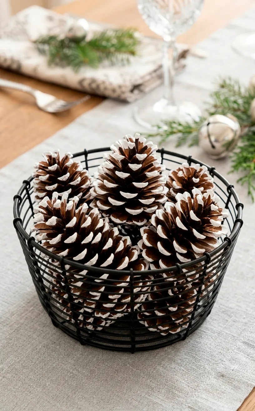 Nature provides the best decor, but sometimes it needs a little glow-up. I take standard pinecones and dip the tips in white paint to mimic the look of frost. They look stunning piled into a black wire basket or scattered across a table runner. It’s a simple DIY that brings that organic farmhouse feel without the clutter.