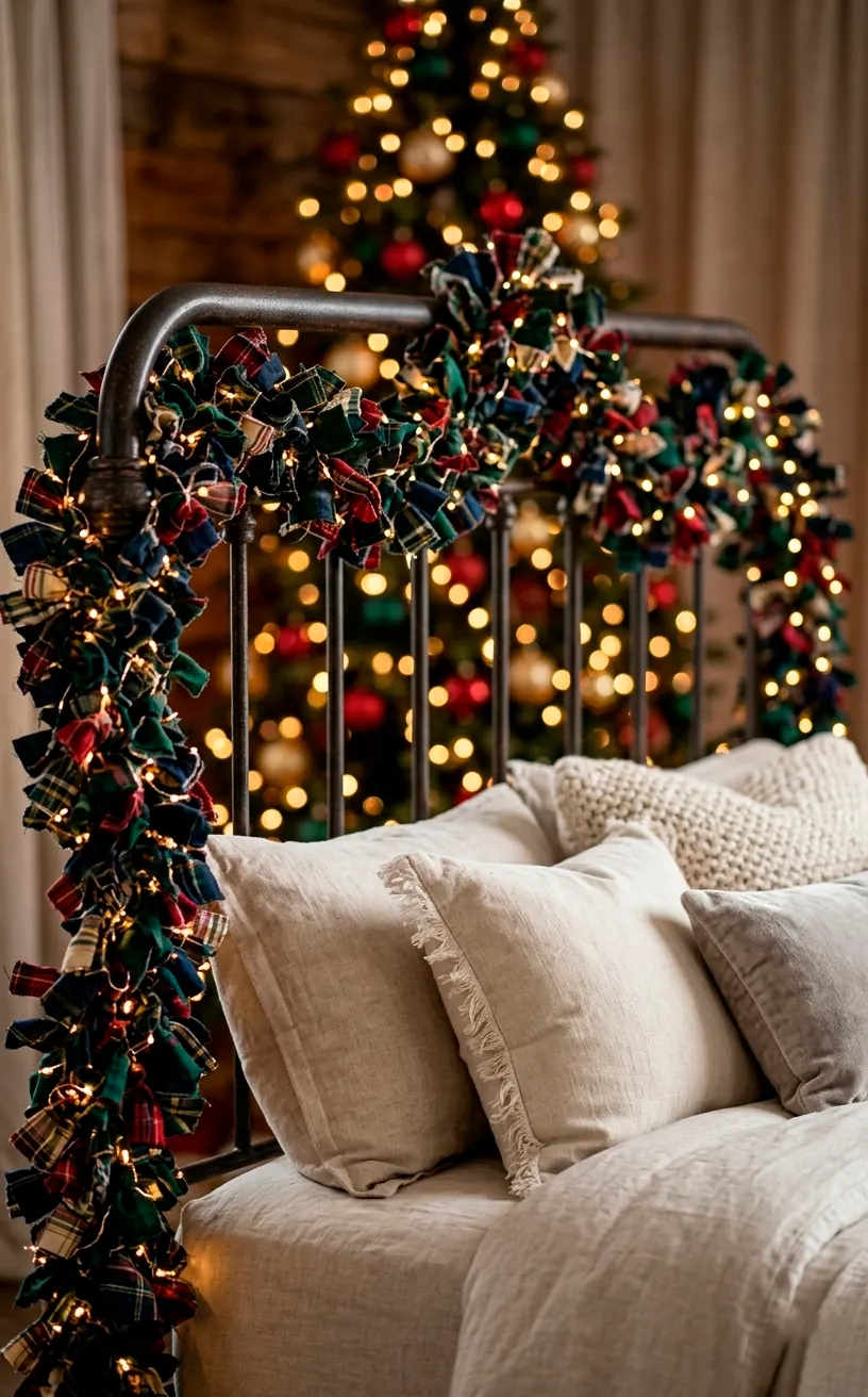 If you have old flannel shirts lying around, don’t toss them! I cut mine into strips to create a rustic flannel scrap garland for my headboard. It adds a handmade, nostalgic touch that store-bought plastic just can’t touch. Wrap some battery-operated fairy lights around it for a soft, magical glow at night. Who knew your old high school shirts could look this high-end with just a pair of scissors? It’s the ultimate eco-friendly holiday hack.