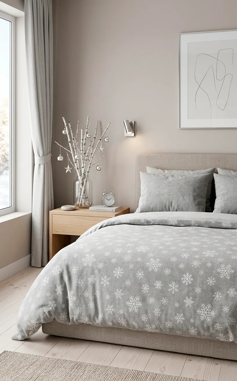 Red isn’t the only way to do the holidays. Grey and white flannel provides a sophisticated, ‘winter lodge’ aesthetic that works long after December ends. I prefer this look when I want the bedroom to feel calm rather than chaotic during the busy season. It pairs beautifully with silver accents and white birch branches. Does anyone else find monochrome flannel weirdly therapeutic? It’s the visual equivalent of a quiet, snowy morning in the woods.