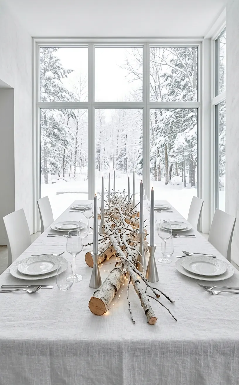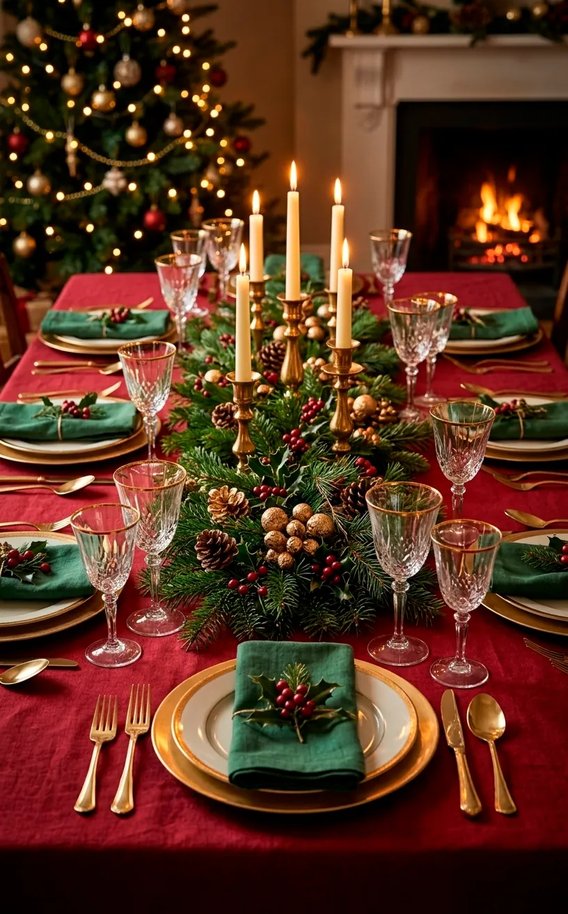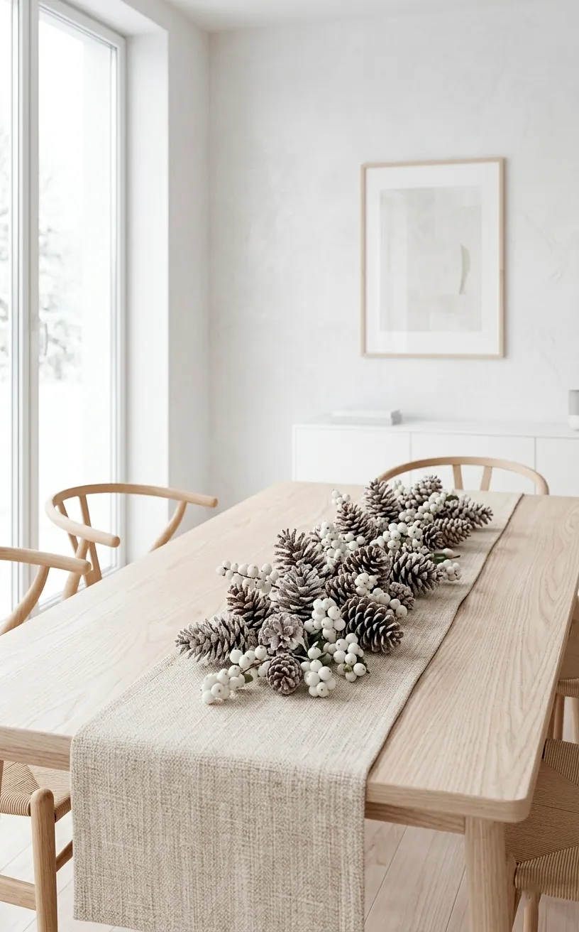 I love scattering frosted pinecones and white berries across an oatmeal runner. It creates a ‘Scandi-chic’ vibe that feels clean and calm. This is perfect for those who find traditional holiday decor a bit too cluttered.