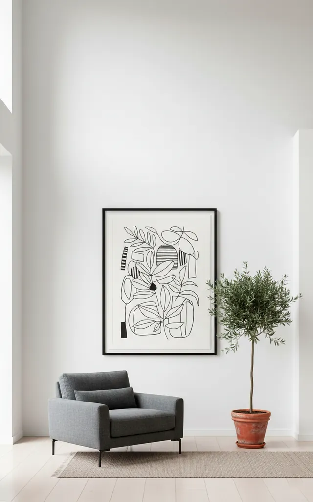 A blank wall is a missed opportunity for a bit of personality. Minimalist line art—usually just a single black line on a white background—fits the Scandi aesthetic perfectly. I have a simple sketch of a face that always gets compliments, despite it taking approximately five seconds to draw. It provides a visual focal point without being distracting. Frame it in thin black aluminum or light oak for a clean finish. It keeps the room feeling light and curated.