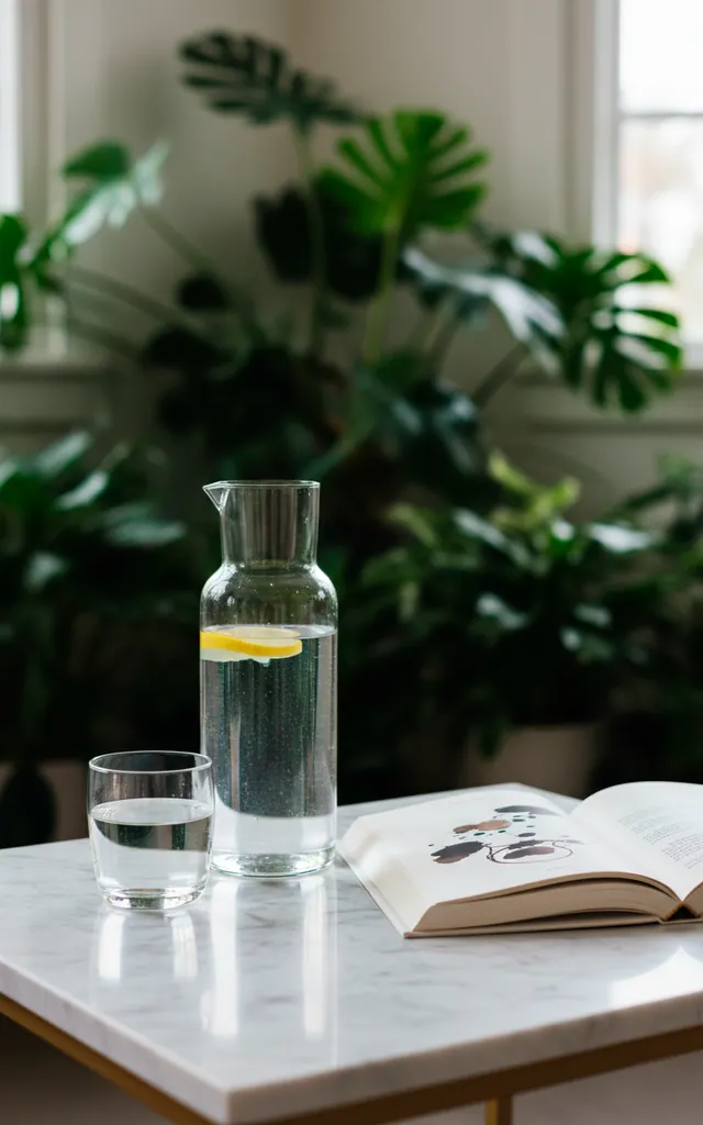 Stay hydrated, friends! A tapered glass carafe with a matching tumbler that acts as a lid is peak functional design. I keep one on my side table so I do not have to break my flow to go to the kitchen. It looks incredibly elegant and catches the light beautifully. Choosing a smoke-grey or amber-tinted glass adds a sophisticated touch to your setup. Is there anything more satisfying than a perfectly poured glass of water during a long chapter? Cheers!