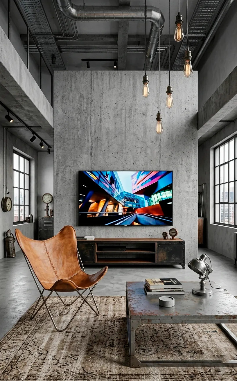 The cold grey tones contrast beautifully with warm leather furniture or a plush rug. It’s the perfect balance of ‘unfinished’ and ‘high-end’ that defines the industrial loft style. TBH, it makes every movie feel like a premiere in an underground cinema.