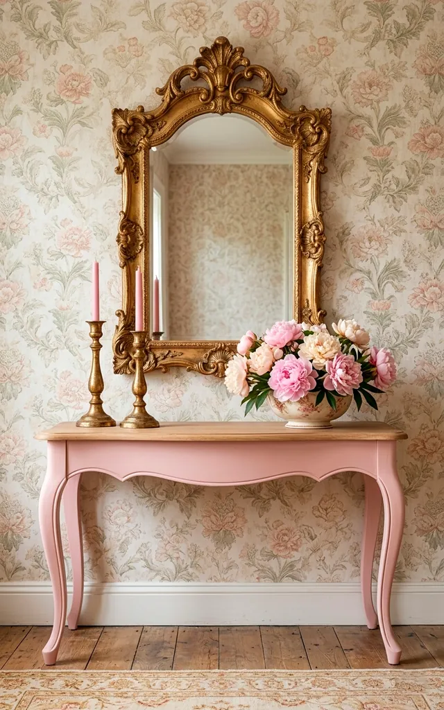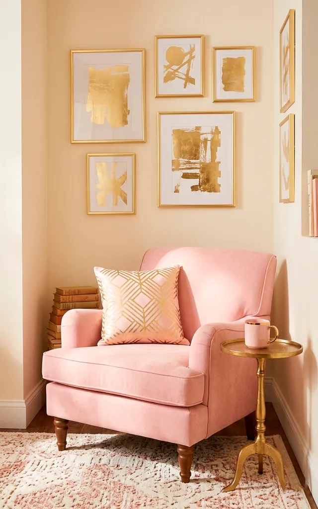 For the vintage lovers, antique gold adds a layer of history to soft peony pink. I found an old mirror at a flea market, spray-painted it antique gold, and hung it over a pink console table. The darker, weathered gold prevents the pink from feeling too sugary. Do you enjoy a bit of ‘shabby chic’ drama? This combo delivers exactly that. Use antique gold candlesticks on a pink linen tablecloth for a dinner party that feels like a scene from a period drama. It’s timeless, romantic, and deeply personal.
