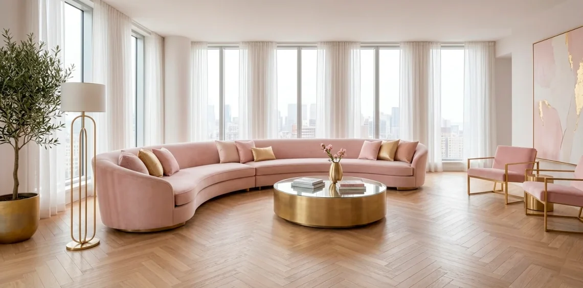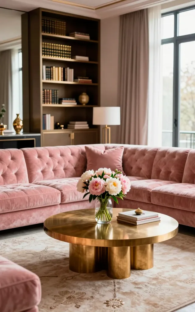 I started my decor journey with a blush velvet sofa, and it changed my entire life. Have you ever touched a fabric that feels like a hug? Brushed brass legs provide the perfect structural contrast to that soft, squishy texture. This combo works because the matte finish of the brass keeps the pink from looking like a nursery. I recommend adding a solid brass floor lamp next to your seating to tie the room together. It looks expensive, feels cozy, and makes every movie night feel like a VIP event. Your cat will also look 10% more royal sitting on it, FYI. 🙂