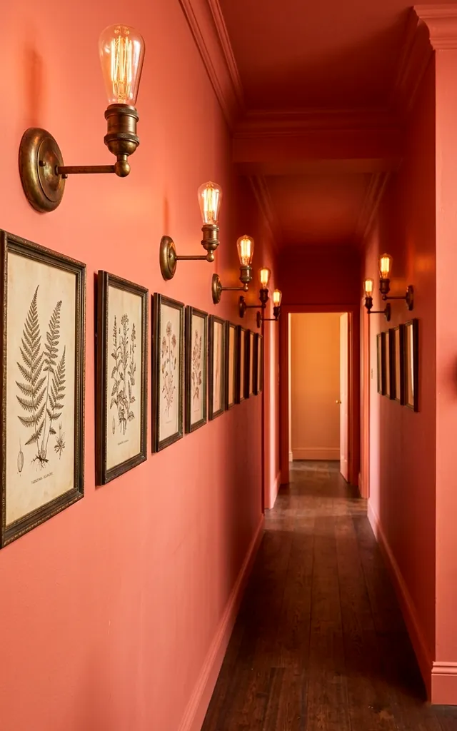 Salmon pink has a vintage, 1950s charm that pairs naturally with antique brass. I used antique brass wall sconces against salmon-painted walls in my hallway. The darker, greenish-gold tint of antique brass balances the vibrancy of the salmon. Why go for shiny when you can go for soulful? This combo feels grounded and intentional. I recommend adding antique brass frames for vintage botanical prints. It creates a ‘collected over time’ look that is hard to replicate with modern finishes. It’s sophisticated, warm, and full of character.