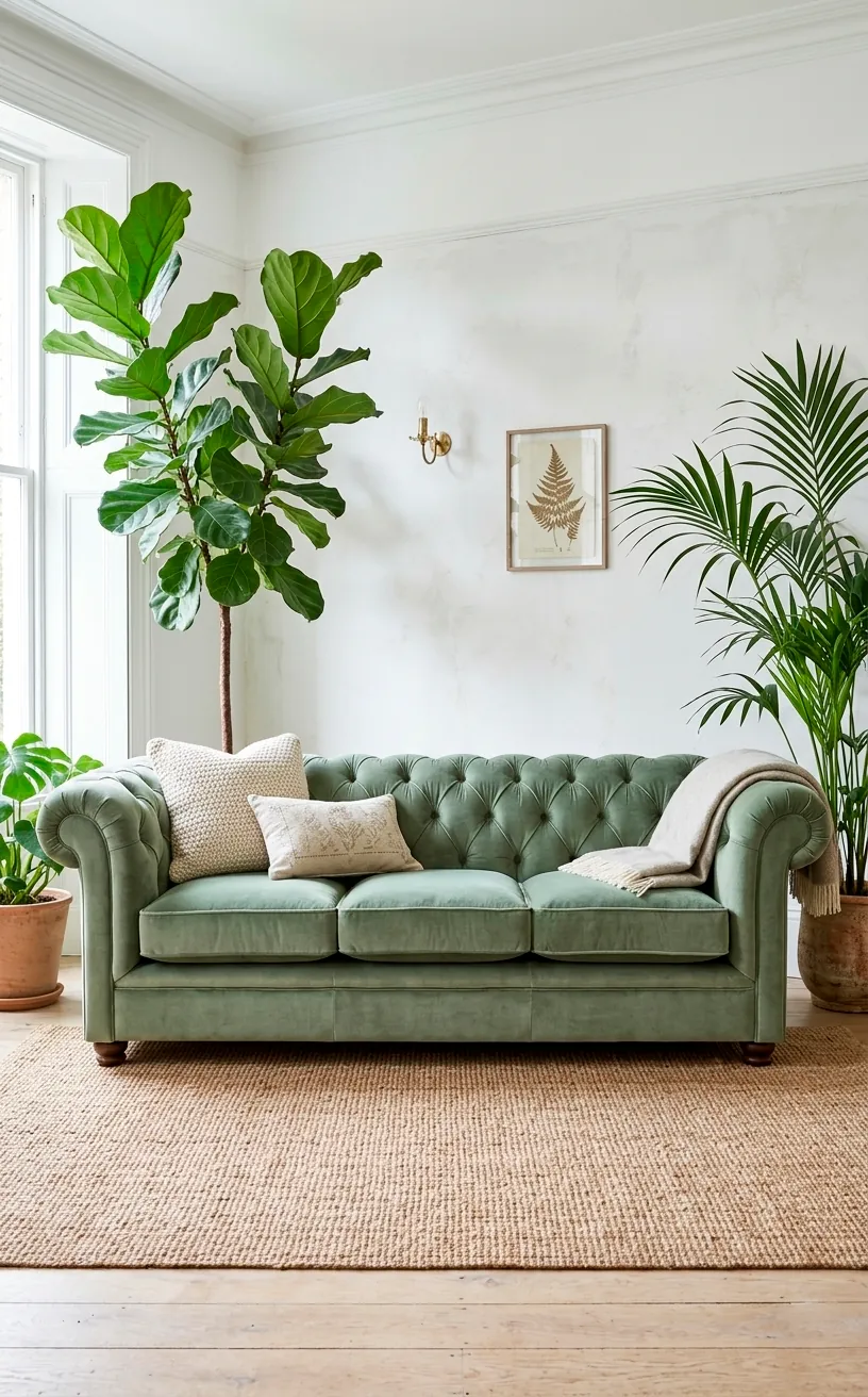 If you really want to lean into the luxury vibe, grab a sage green velvet sofa. Seriously, nothing says ‘I have my life together’ quite like velvet. I think the way light hits the fabric creates so much depth that a standard flat cotton just can’t match. It’s soft, it’s inviting, and it makes every movie night feel like a VIP event. Just keep the cat away from it if you value your sanity. Ever noticed how a single piece of furniture can shift the entire mood of a house?