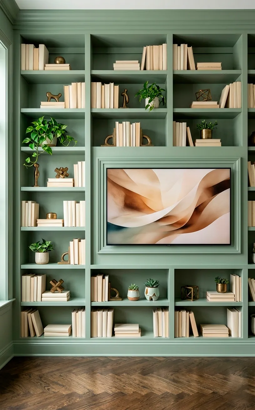 If you have a lot of stuff—let’s call it ‘curated treasure’ instead of clutter—sage green shelving is a game changer. I love the look of built-in shelves painted the exact same color as the walls. It creates a seamless, high-end look that makes the room feel much larger.