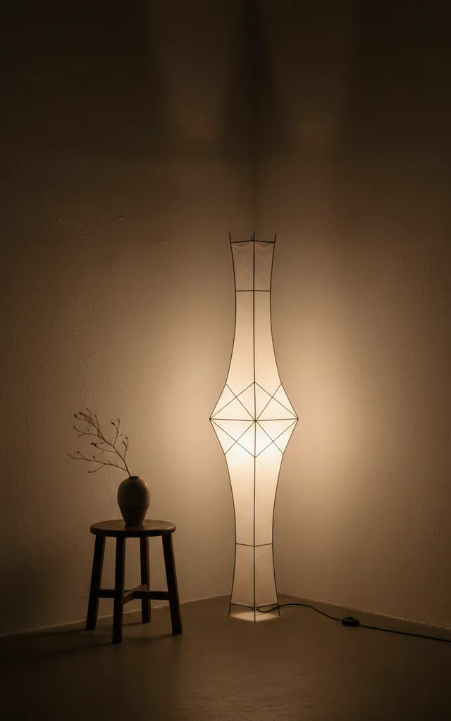 Harsh overhead lighting is the enemy of a refined mood. I replaced my basic floor lamps with an Akari-style washi paper lamp and never looked back. These lamps cast a warm, diffused glow that makes everything look expensive. Who wants to live under a bright hospital light anyway?