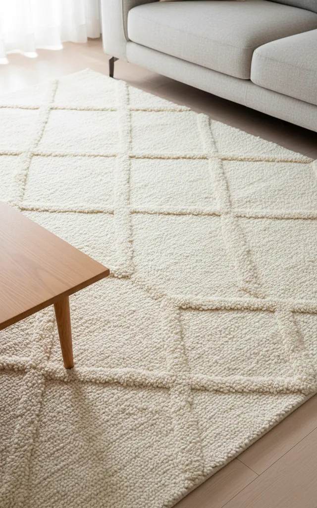 A plain rug is a missed opportunity for style. I love a thick wool rug with a 3D geometric texture because it adds depth without using distracting colors. It feels like walking on a cloud, which is a total win for comfort. Why settle for a flat, scratchy carpet when you can have this?