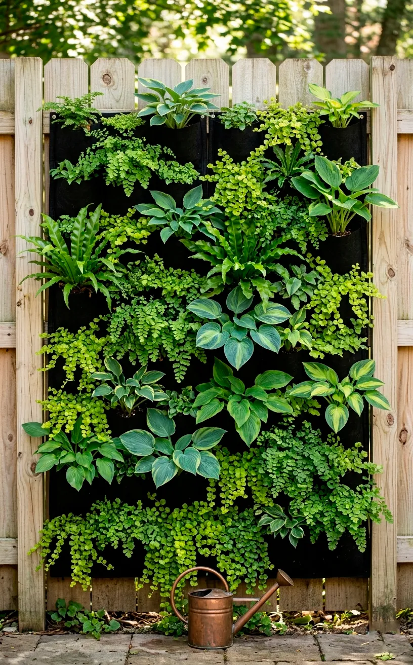Fabric wall pockets feel like a total cheat code for small spaces. They weigh almost nothing and cover boring fences with a living tapestry of texture. I noticed my ferns thrive in these because the felt material allows the roots to actually breathe. No more soggy roots or heavy ceramic pots to worry about! FYI, you can find these in various sizes to fit any awkward corner you have. I love how the foliage eventually grows to hide the black fabric entirely. Why stare at a blank fence when you could stare at a wall of ferns? :/