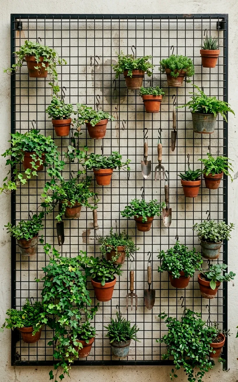 Wire grids offer that industrial-chic look that works with literally any style. I use S-hooks to hang everything from small pots to my favorite gardening tools on mine. It’s like a mood board, but with living things! Don’t you think your patio deserves a bit of ‘organized chaos’? The best part is how easy it is to move things around whenever you get bored. You can swap out a dying plant for a new one in seconds. It’s the ultimate flexible garden for people who like to change their minds as often as I do. 🙂