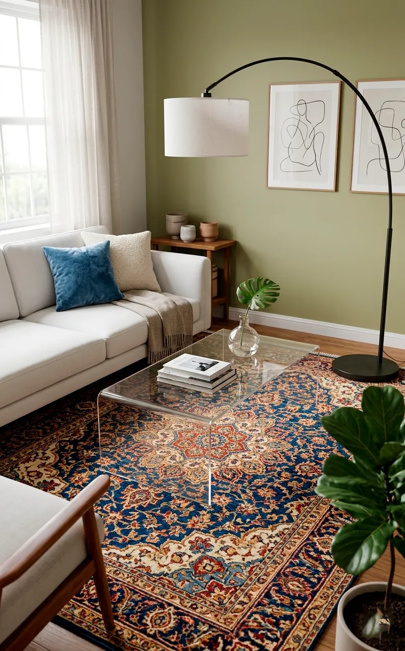 It’s the ultimate trick for making a cramped space feel wide open and airy. I use an acrylic console in my hallway and I forget it’s even there half the time! It’s perfect for showing off a beautiful rug that would otherwise be hidden under a bulky wooden table.