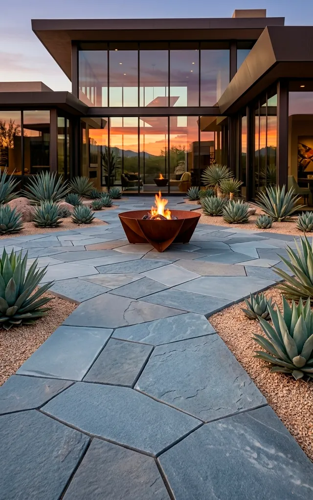 Why settle for straight lines when you can have a chevron masterpiece? This layout adds a sense of motion that makes small yards feel surprisingly huge. I used this for a client last year, and the way the shadows hit the angles at sunset is just chef’s kiss. It creates a high-end look without the high-end price tag if you DIY the pavers. Ready to stop walking in straight lines? The zig-zag pattern naturally draws the eye toward your focal point, like a fire pit or a fountain. It’s the ultimate way to make your neighbors feel a little bit jealous of your design chops.