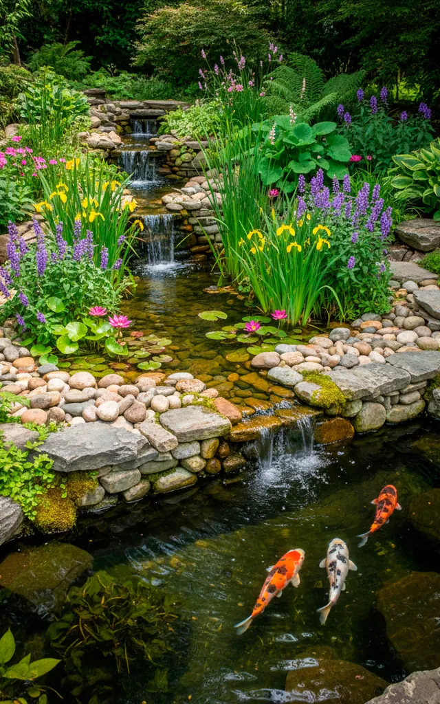 Most people forget that a pond should look great after 8 PM. Fiber optic lighting installed at the bottom of the pond can mimic a starry night. I’ve installed these before, and let me tell you, the effect is magical. It turns the water into a deep, glowing void that highlights the koi’s movement.