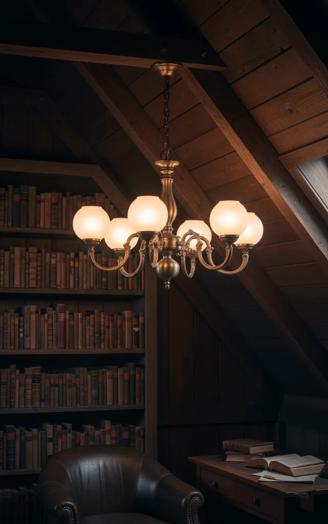 Standard LED panels belong in an office, not your sanctuary. I hunted through antique shops for months to find the perfect schoolhouse pendant for my space. If you can’t find originals, high-quality reproductions work wonders. Avoid recessed can lights unless you want your ceiling to look like Swiss cheese. Do you want your attic to feel like a cozy library or a sterile lab? Subtle, warm-toned bulbs make the wood grain pop beautifully.