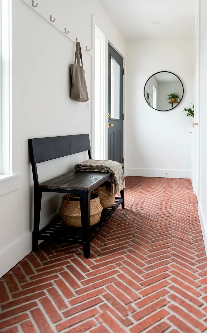 Who says brick only belongs on walls? Bringing that texture to the floor is a genius way to define a “mudroom” area in an open-plan studio where a foyer doesn’t actually exist. I’ve found that using thin brick pavers or even high-quality brick-effect tiles creates a durable, slip-resistant landing zone for your boots.