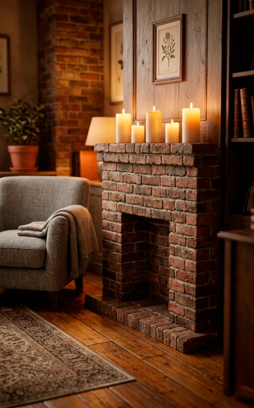 Even if your fireplace is purely decorative (or just a space heater), surrounding it with brick adds instant gravitas. I once saw a tiny studio where the owner built a mock mantel out of brick panels around a collection of candles. It looked incredibly cozy! You don’t need a real chimney to enjoy the visual warmth of a hearth.