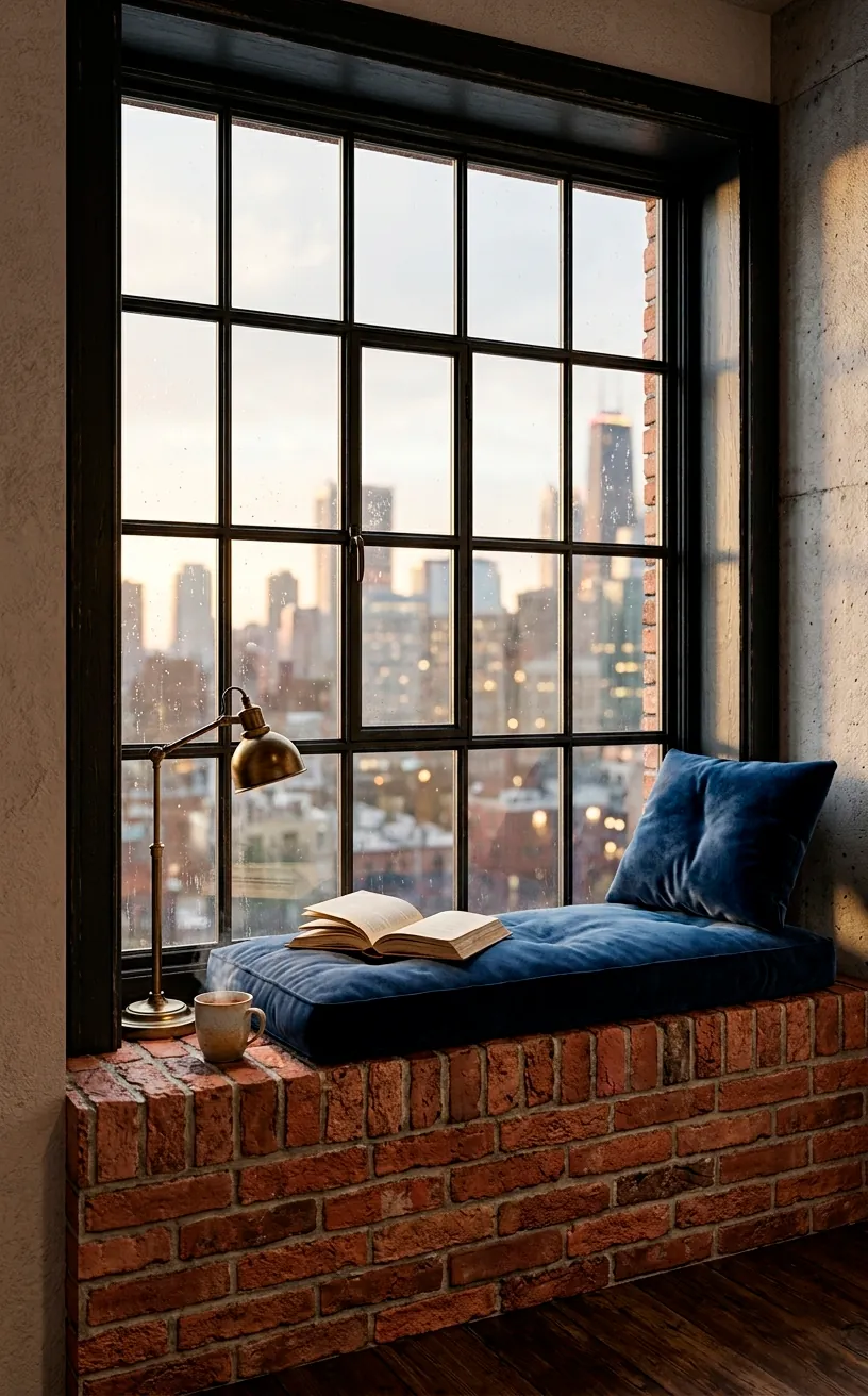 If you’re lucky enough to have deep windowsills, you should definitely line them with brick. It frames the urban view perfectly and makes the window feel like a deliberate design choice rather than just a hole in the wall. I recommend using thin brick veneers for this project because they won’t interfere with the window’s operation.