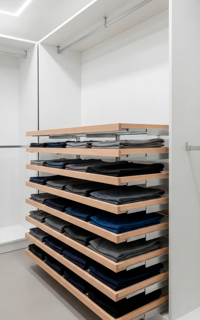 Stop wrestling with your closet rods. FYI, pull-out accessories maximize every inch of depth you currently ignore. Retractable valet rods hold tomorrow’s outfit, while slide-out scarf racks keep silk from slipping onto the floor. Why struggle with cramped corners when the hardware can do the heavy lifting for you?
