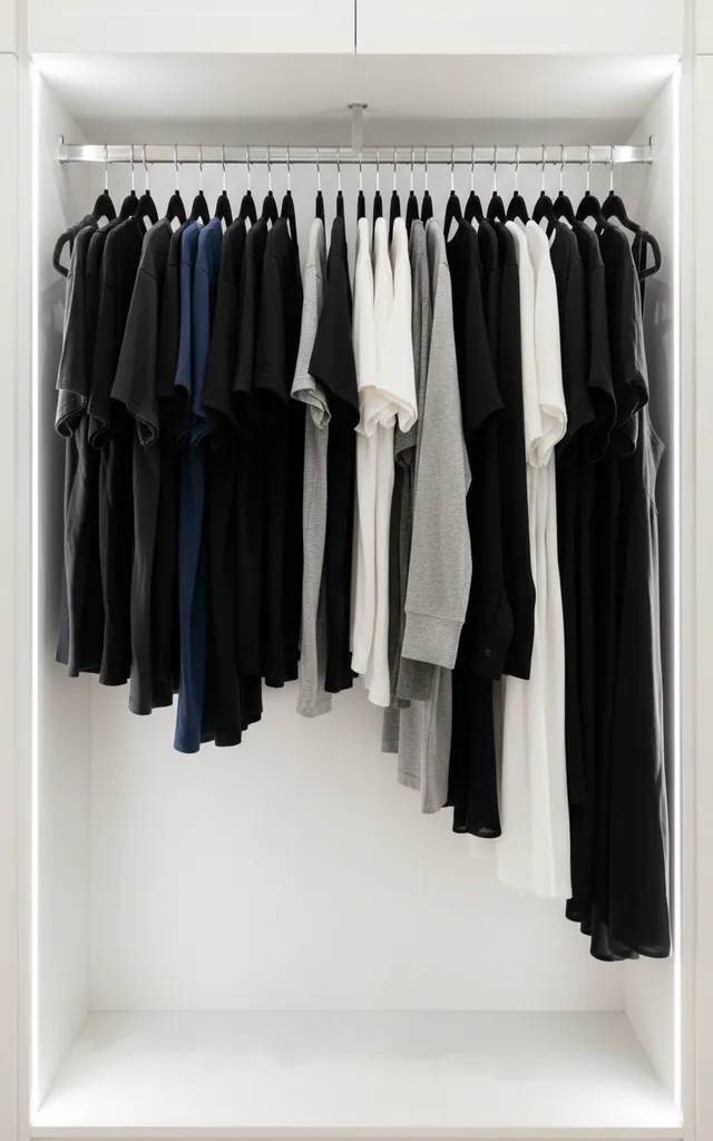 Mixing wire, plastic, and wooden hangers creates a recipe for visual chaos. Pick one style and stick to it religiously. Slim velvet hangers are my absolute favorite because they prevent clothes from sliding and take up half the space of bulky wood. It’s a tiny investment that yields a massive aesthetic payoff. 🙂