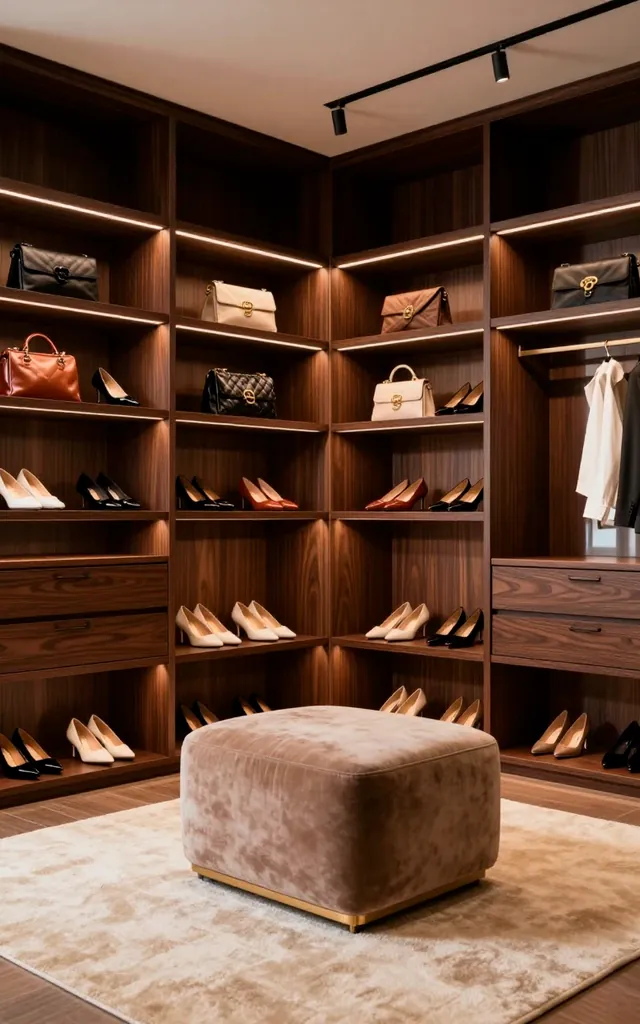 Open shelving transforms a chaotic closet into a curated gallery. I spent years digging through opaque bins only to find a moth-eaten sweater I forgot I owned. IMO, visibility changes the game. Floating glass shelves and LED strip lighting highlight your best pieces like a high-end boutique display. Why hide your favorite heels in a dark box?