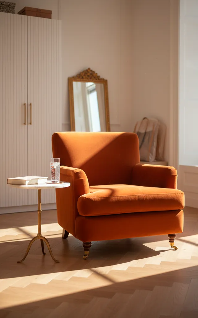 If you want a chair that survives both your morning coffee and the test of time, mohair is the answer. This stuff is thick, resilient, and incredibly soft. I personally adore it in burnt orange for a sun-drenched corner.