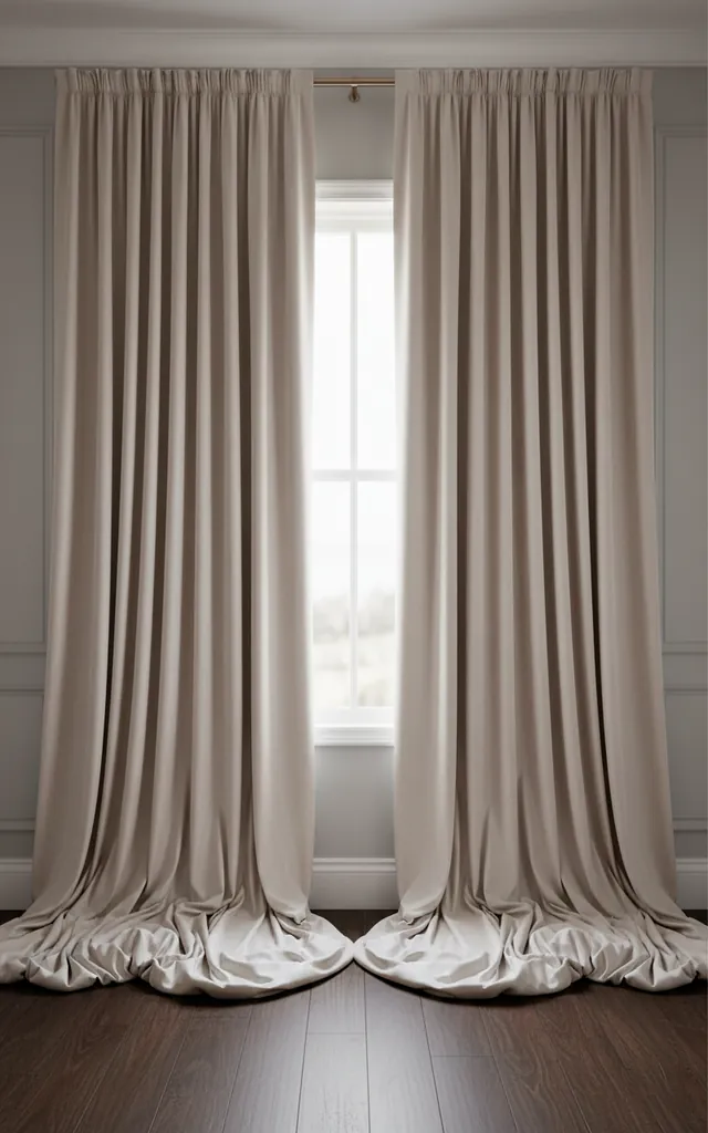Unless you enjoy the “hospital ward” vibe of plain blinds, you need silk velvet curtains. They pool on the floor like a melted champagne dream. * Liquid-like sheen reflects light beautifully across the room.