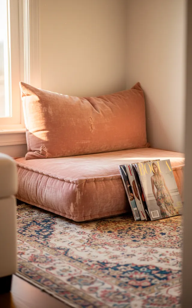 I love throwing a large floor cushion over a vintage rug. It says, “I’m stylish, but I don’t try too hard.” 🙂