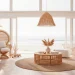 - Intricate textures make a simple ottoman the room’s centerpiece.