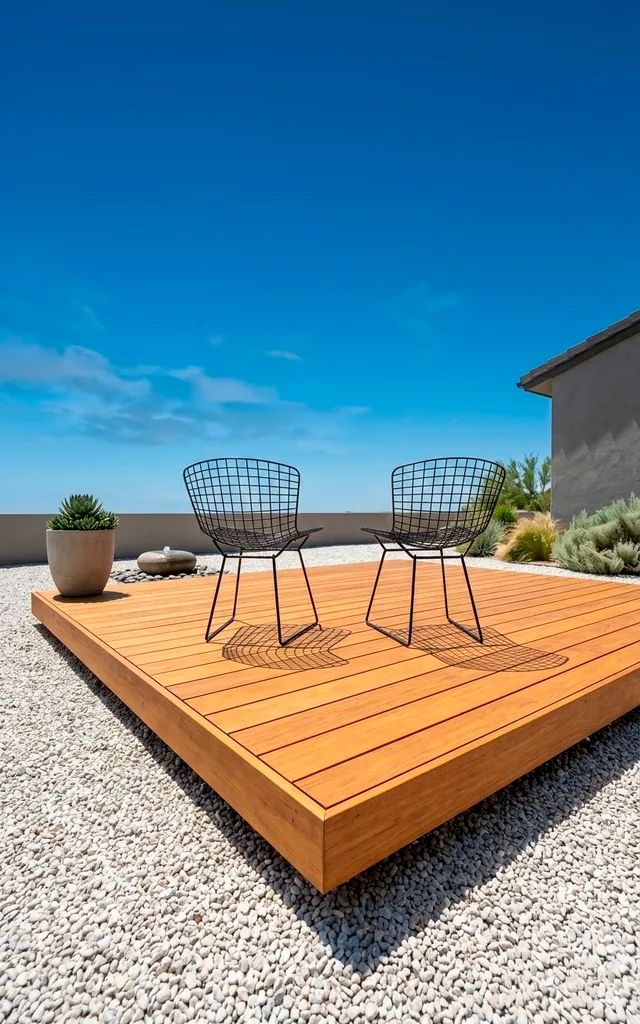 Nothing says luxury like a deck that appears to hover above the ground. I built one of these last summer and it still feels like magic every time I step on it. Stick to light-colored woods like Ipe or cedar for that warm, modern touch. Keep the edges sharp and skip the bulky railings to maintain a clean horizontal plane. It creates a perfect stage for your morning coffee. Ever thought about how much better a yard looks without chunky stairs blocking the view?