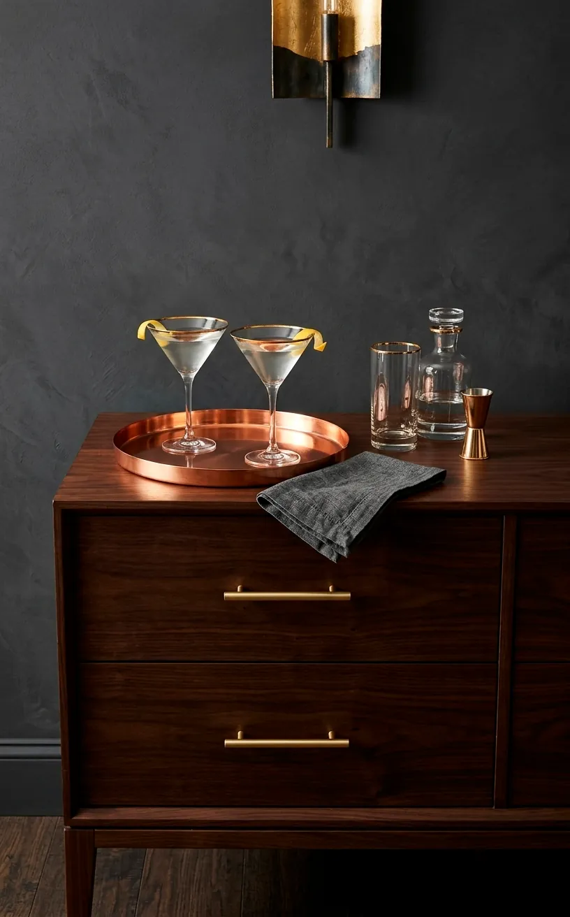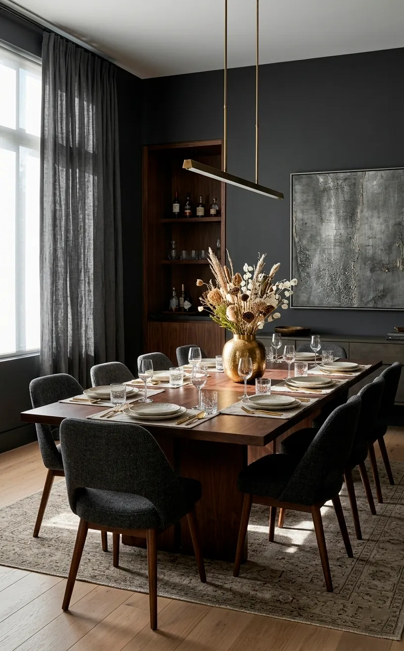 To prevent a dark room from feeling muddy, you need to add some metallic ‘punctuation marks.’ I love mixing gold, brass, and copper throughout the space. Think of these as the jewelry for your room. A gold serving tray on a black sideboard or copper napkin rings on a dark linen tablecloth provide just enough contrast to make the dark colors sing.
