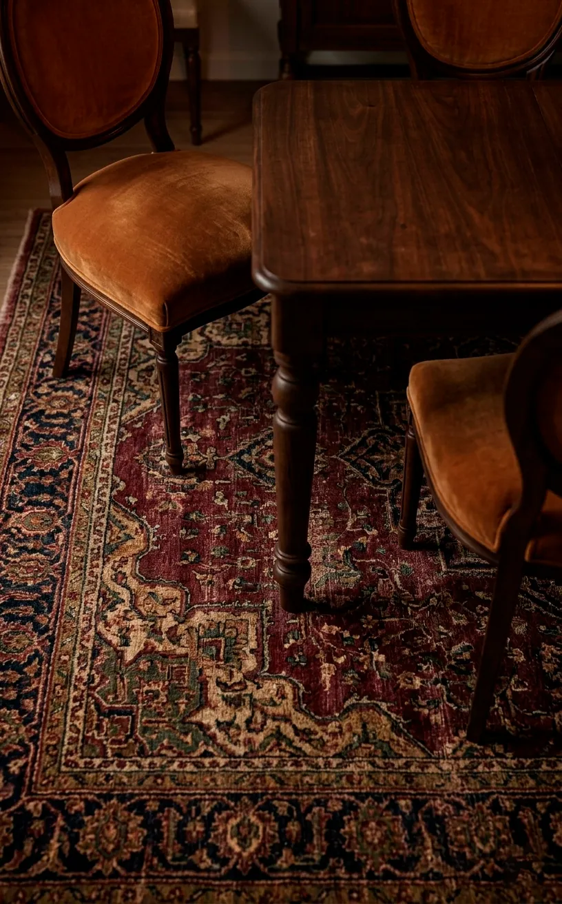 Never underestimate how much a rug anchors a dramatic room. I love using low-pile rugs with subtle, vintage-inspired patterns that incorporate deep reds or faded indigos. These textures add a layer of sophistication that prevents the room from looking too ‘flat.’ If you pick a rug with a slight sheen, it will catch the low light from your chandelier and add a touch of unexpected sparkle to your feet. A heavy, textured rug also dampens sound, making your late-night conversations feel much more private and cozy. Choosing the right rug means you value comfort just as much as you value high-end aesthetics.