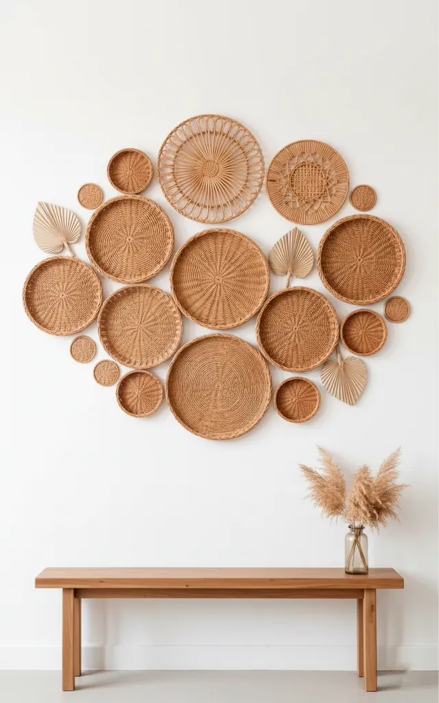Bathrooms often lack ‘soul’ because we focus so much on function. Why not treat your walls like a gallery? I love hanging a cluster of flat wicker fans or shallow baskets above the toilet or next to the shower. They withstand the humidity much better than framed paper prints. This simple addition creates a focal point that ties all your other wicker accents together. It’s an affordable way to make a big impact without picking up a paintbrush or a drill. 🙂