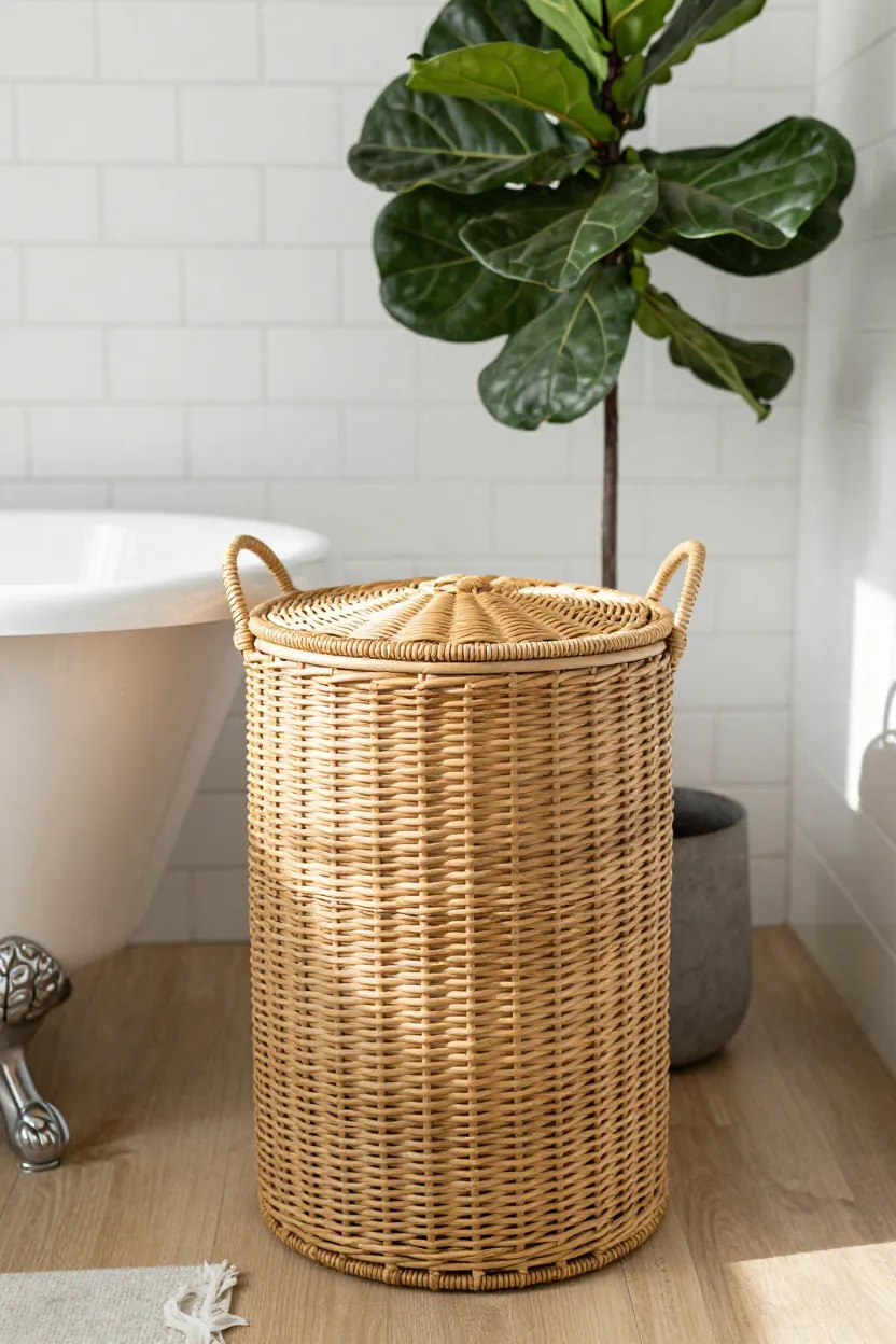 Let’s be honest: dirty socks don’t scream ‘boho chic.’ IMO, a plastic laundry bin is the fastest way to kill a room’s vibe. I swapped my old mesh pop-up for a massive, lidded wicker hamper and never looked back. It acts as a functional piece of furniture while keeping your laundry out of sight. A sturdy weave ensures it stands tall even when empty. Why settle for ugly plastic when you can have a sculptural masterpiece that smells like dried grass instead of gym clothes?