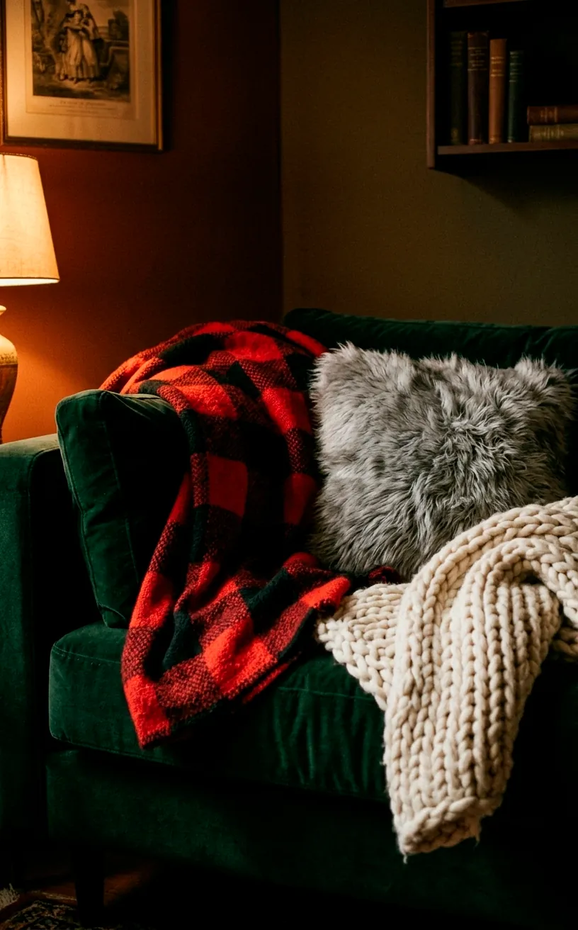 If your living room doesn’t look like a giant hug, you’re doing it wrong. I always reach for heavy wool blankets and classic Buffalo plaid patterns when I want to up the ‘cozy factor.’ Why settle for thin polyester when you can wrap yourself in a thick, chunky knit throw? These textures soften the hard lines of the wood and stone we love so much. You can also mix in some faux fur for a touch of mountain luxury that doesn’t scream ‘I live in a cave.’ For more ideas on how to layer your space, check out these 8 cozy textures for a small dressing room.