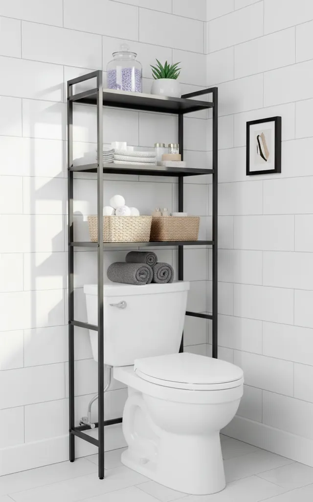 Bathrooms in studios are notoriously cramped, usually leaving you with zero room for towels. Over-the-toilet shelving units utilize that dead space above the tank. I prefer the sleek bamboo or black metal versions over the cheap plastic ones. Have you ever tried to find a place for extra toilet paper without it looking like a warehouse? These units keep everything organized and within reach. They turn a cluttered mess into a spa-like retreat.