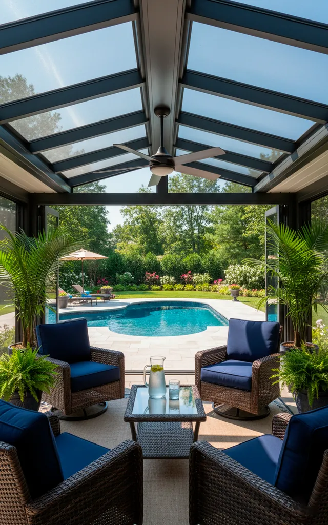 You want a room that works even when it is freezing outside, right? A Four-Season Sunroom uses high-grade insulation and dedicated HVAC to keep you comfy year-round. FYI, I personally think this is the smartest investment for resale value because it counts as true square footage. Why limit your sunshine to just three months a year when you can enjoy a blizzard from your sofa? These rooms typically feature double-pane glass and thermal breaks to stop heat from escaping. It creates a seamless extension of your home that buyers absolutely crave.