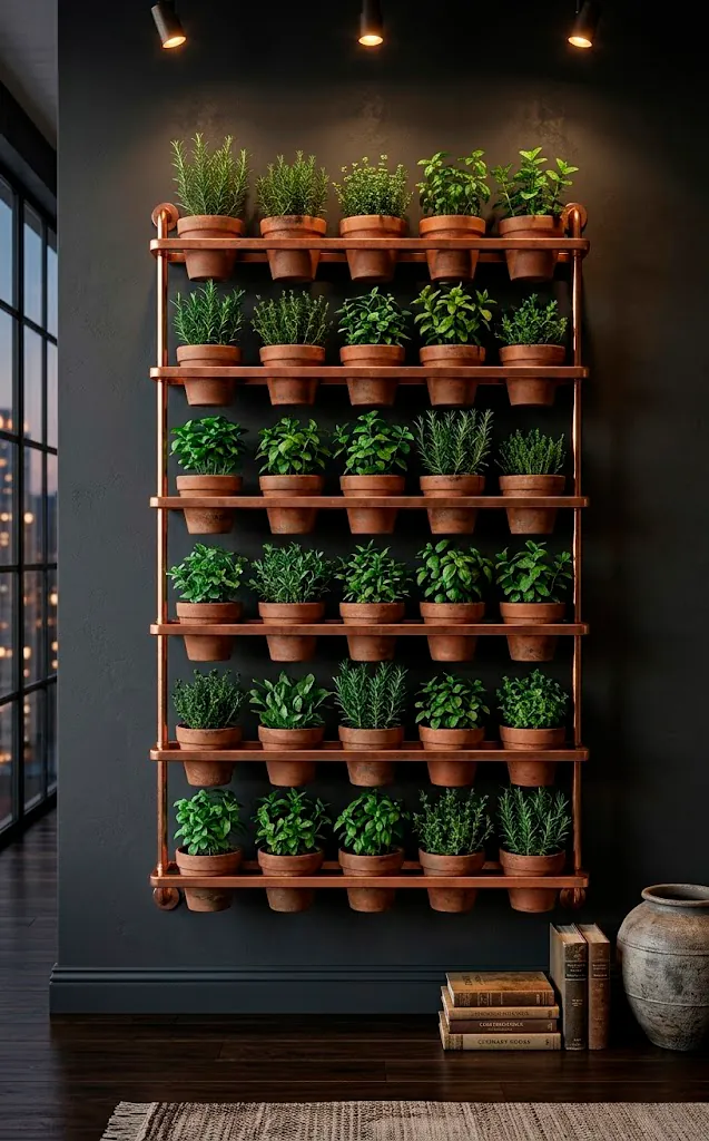 7 Tiered Copper Racks for a Sophisticated Herb Wall