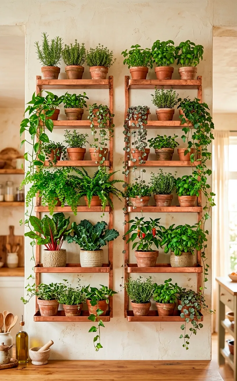 Building a sophisticated herb wall doesn’t have to be a daunting DIY project. A 7-tiered copper rack provides the structure, style, and space-saving magic you need to level up your kitchen game. Whether you’re a seasoned gardener or someone who usually kills silk plants, this setup makes herb care feel like a luxury rather than a chore. So, which herb are you planting first? Let me know in the comments! 🌿✨