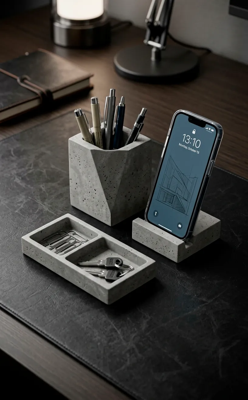 Why use plastic bins when you can store your pens in a mini-monolith? I love how a concrete pen cup adds a tactile, heavy element to the desktop. It makes even a cheap ballpoint pen look like a luxury item. These organizers don’t slide around when you reach for a paperclip, and they feel incredibly satisfying to touch throughout the day.