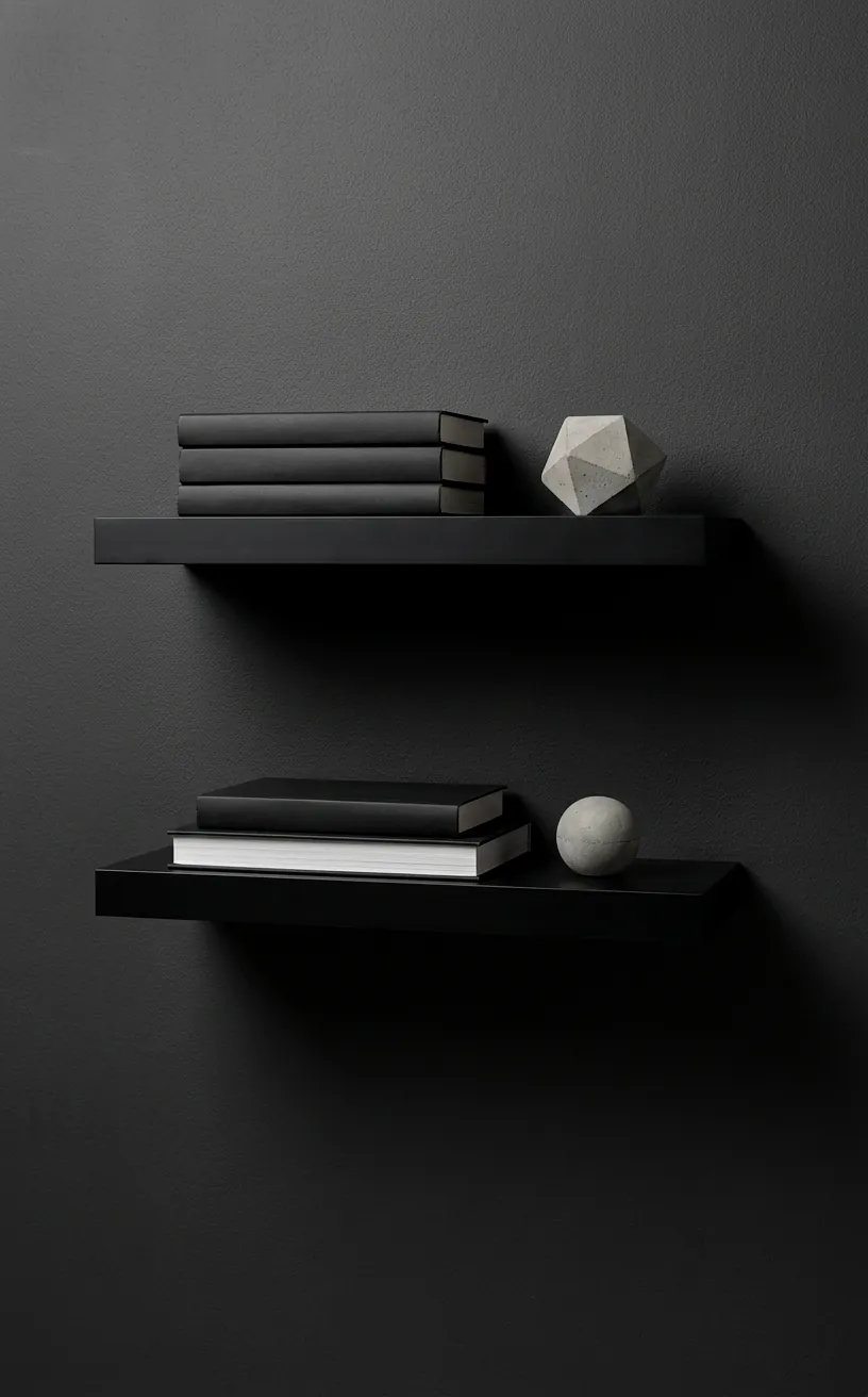 Clear the clutter off your desk and put it on the wall where it belongs. I use matte black floating shelves because they disappear against a dark wall, letting my gear look like it’s floating in mid-air. They provide the perfect stage for your favorite books or a vintage camera. You gain extra storage without sacrificing that clean, minimalist vibe you’re chasing.