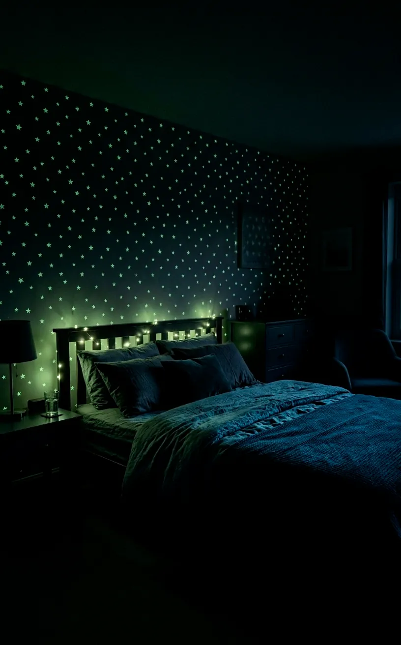 This wallpaper basically turns off the lights for you. I remember having those plastic stick-on stars as a kid, but this is the sophisticated adult version. The stars charge during the day and emit a soft, comforting green glow at night.