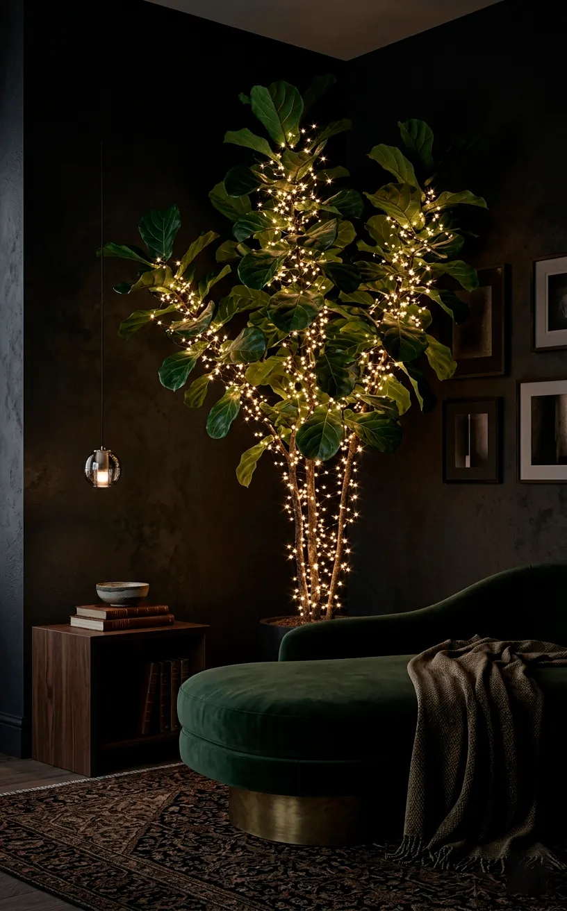 Forget the dorm room vibes—think sophisticated fairy lights. I wrap tiny ‘seed’ lights around a large indoor plant or drape them inside a glass cloche. It adds a magical sparkle to a dead corner without looking like a college frat house. ✨ These lights weigh almost nothing, so you can hang them with tiny clear hooks that leave zero trace behind when you move out. It’s the ultimate low-effort, high-reward move for renters who want a bit of whimsy.