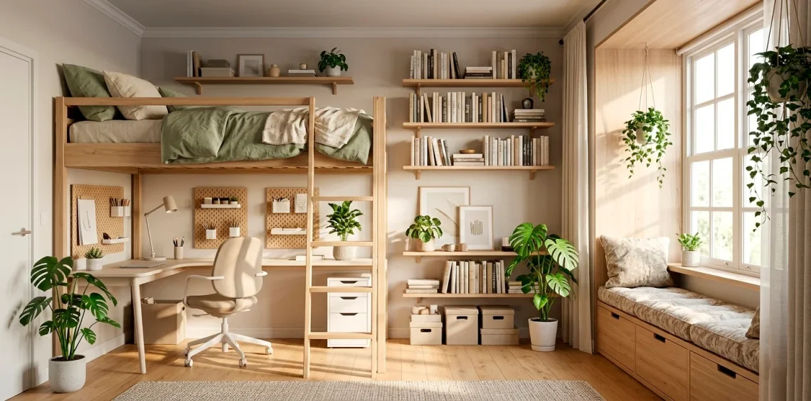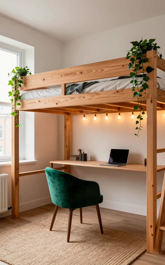 I once lived in a room so small I had to step over my cat just to reach the light switch. Then I discovered loft beds. Why waste half your floor on a mattress when you can sleep in the clouds? You create an entire ‘downstairs’ area for a desk or a cozy reading nook. It feels like a secret fortress for grown-ups. Just make sure you don’t forget where the ladder is after a long night, okay? 🙂