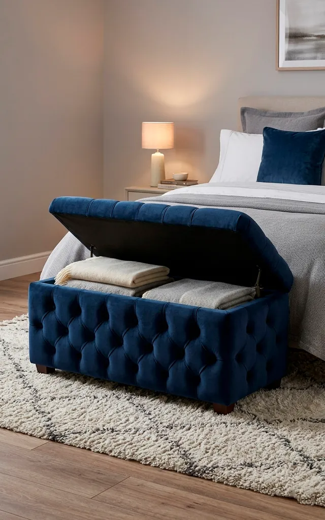 Storage ottomans are the Swiss Army knives of furniture. I use mine as a vanity stool, a footrest, and a place to hide my gym gear. You get extra seating for friends and a hidden trunk for clutter. It looks like a high-end decor piece but works like a heavy-duty bin. Does your current chair hold your secrets and your sweaters? I didn’t think so. Choose a velvet finish to add a touch of luxury.