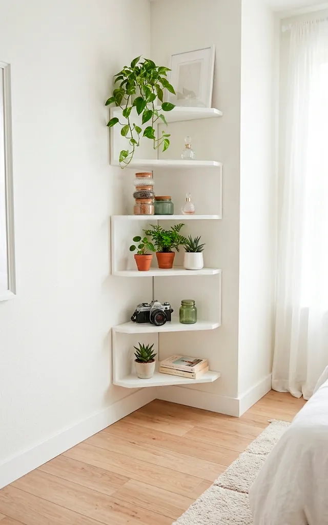 Corners often sit lonely and empty, which is a total waste of space. I found a zig-zag corner shelf that fits perfectly into the tightest angles. It holds my plants and candles without invading the center of the room. You utilize every single inch of the floor plan this way. It transforms a dead zone into a focal point. Why leave corners naked when they can hold your treasures? It adds so much character to the layout.